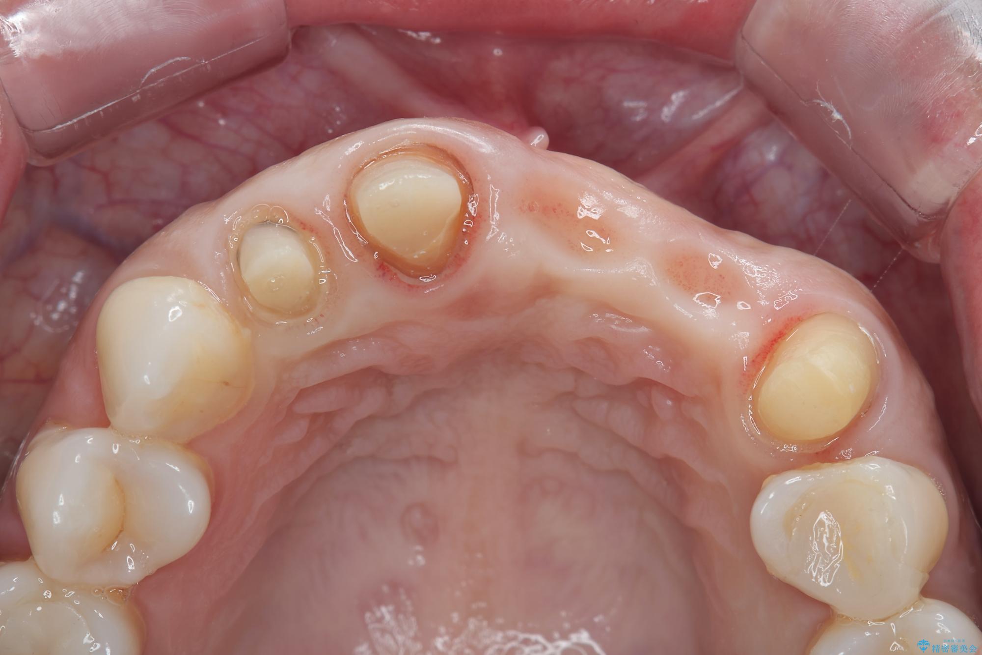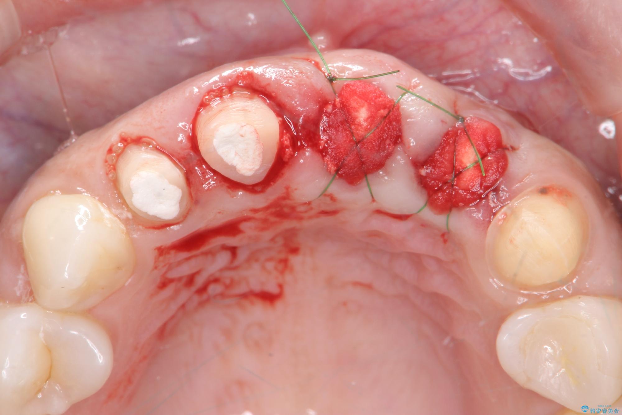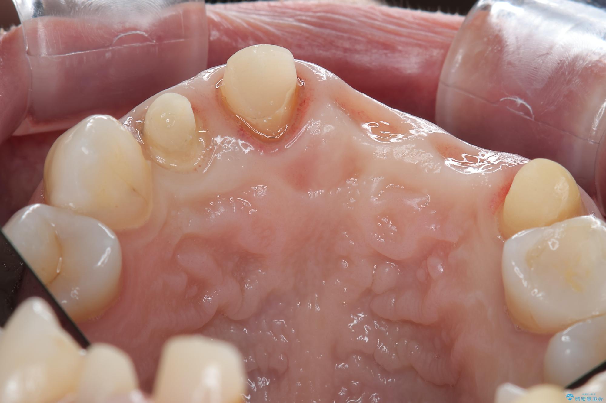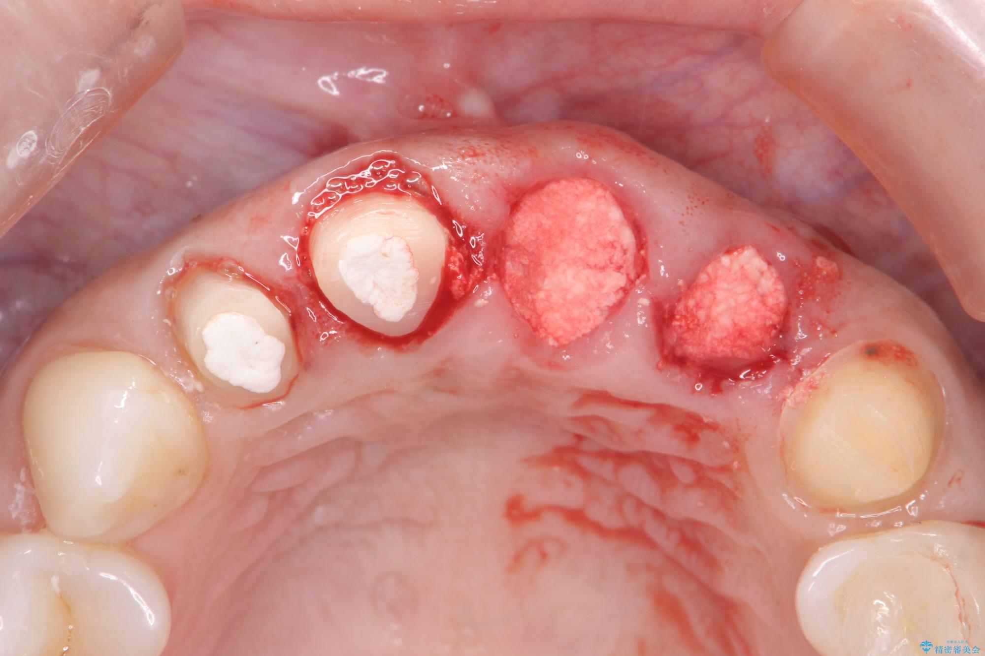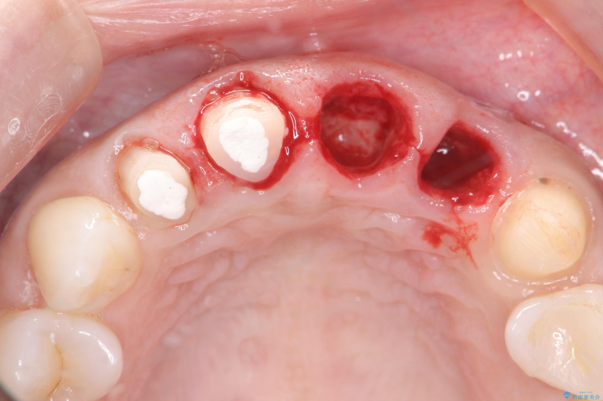 抜歯時に可及的に歯肉のボリュームを保つよう骨充填材とコラーゲン製剤による填塞を行い審美的かつ機能的なブリッジとなるよう治療を進めます。