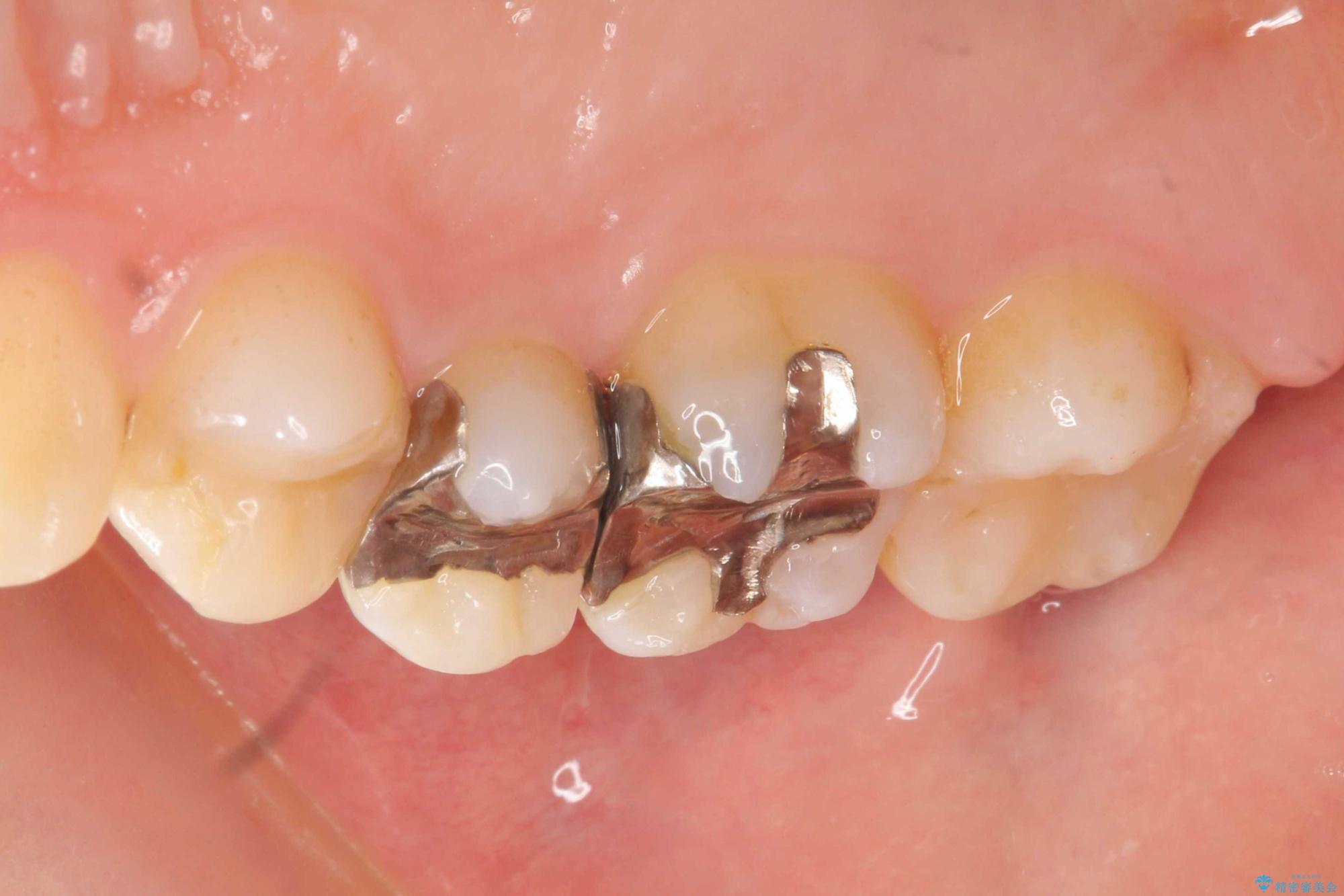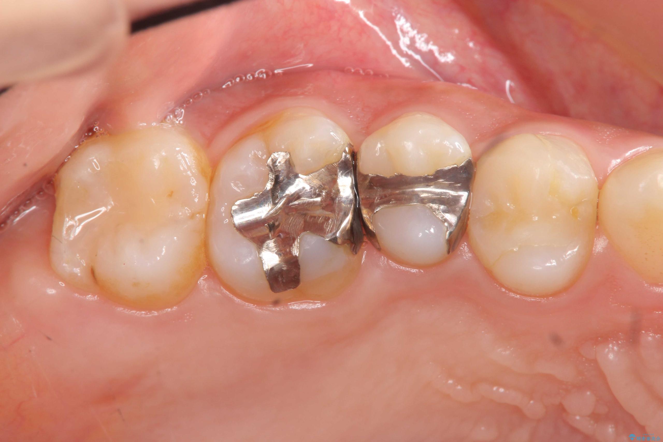 銀歯を除去し、審美性を改善、虫歯の再発リスクも低いセラミックインレーを用いた治療計画を進めていきます。